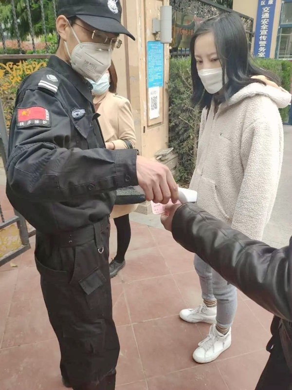 后來,隨著疫情的升級,在咸陽市疫情防控工作要求中,各小區只保留1個出入口,他便被分到了小區唯一的出入口——南門。曾經暢行的外賣送餐員、快遞小哥停住了車,外來來訪人員站住了腳,閑逛的人被勸了回去;未戴口罩、拒絕登記的人員被攔在了門外。