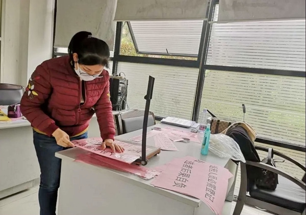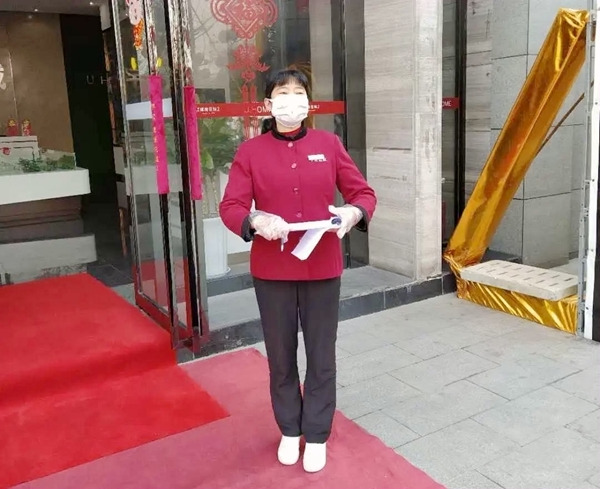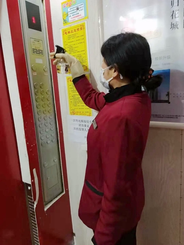 春節期間,鄭惠蘭每天落實各衛生死角、電梯,大堂、消防樓梯以及垃圾桶的消毒工作。每天消毒兩次以上,拍照記錄并上傳朋友圈。她還安排了專人在前臺整理打印各種疫情防控通知與提示,填制各種文檔表格,并上傳給相關部門。特殊時期,雖然通知多且繁雜,但她仍不敢懈怠,認真工作。