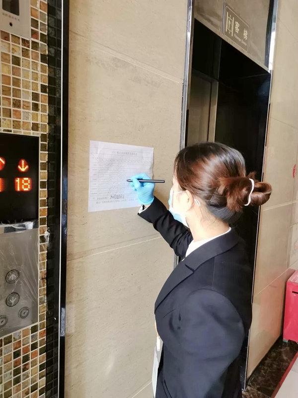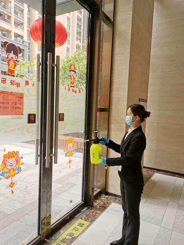 在這段最關(guān)鍵的疫情防控時(shí)間里,小區(qū)每一個(gè)角落都幾乎有她的身影出現(xiàn)。每天巡查小區(qū)衛(wèi)生整潔、設(shè)施安全情況。疫情期間更是帶領(lǐng)著大家進(jìn)行一次次貼膜、一次次的消毒工作。