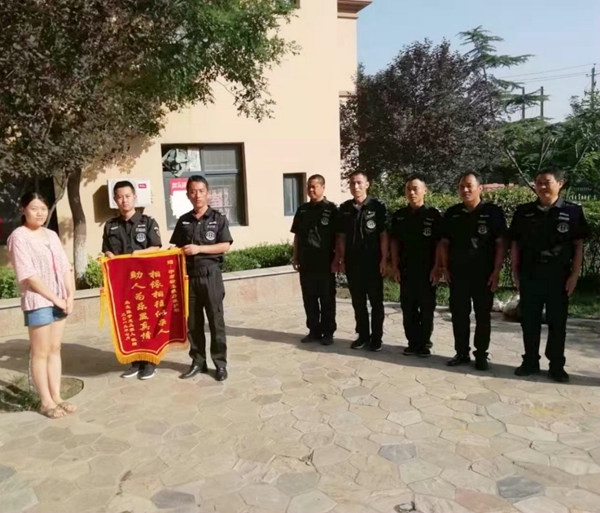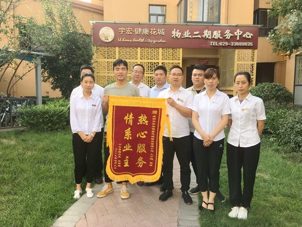 7月22日上午剛上班,小區13號樓物業安防監控室門口,安防小伙子們站成一排,面帶微笑,行軍禮,興致勃勃地接過14號樓陳女士贈送的錦旗。詢問后,我們才知道,陳女士的父親常年臥病在床,家里就她一個人照顧老人,平時進出十分不便,了解到此情況后,物業安防小伙子們經常三四個人一塊到家中幫助攙扶老人上下輪椅、搬運重物,楊女士十分感動,便送來錦旗以示感激之情。