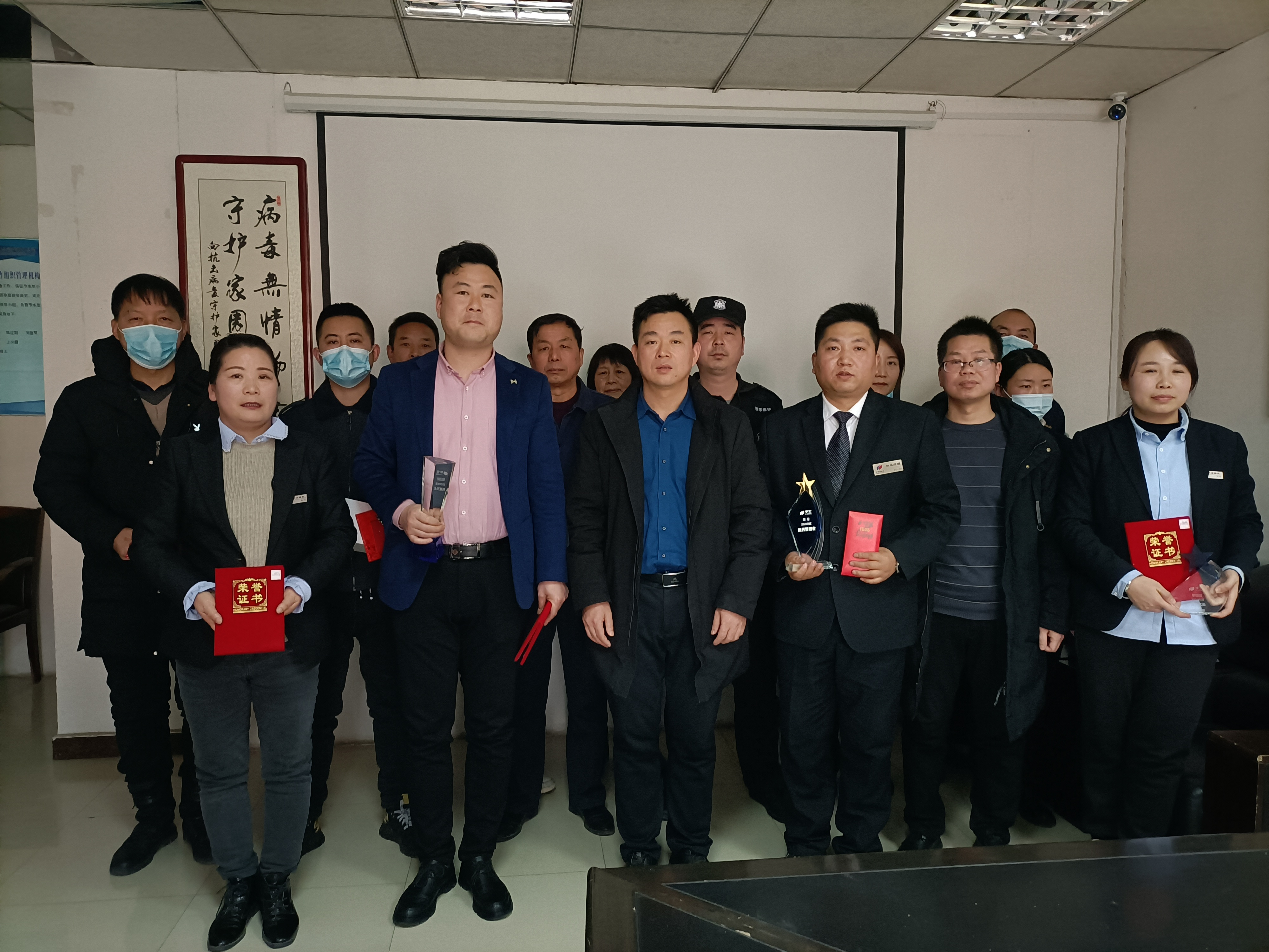 2021年1月29日,咸陽物業公司領導、各部門主管、助理、領班、優秀員工以及辦公室人員齊聚一堂,共同召開了2020年度總結暨先進表彰大會。會上,大家認真總結2020年的成績與不足,展望2021年工作的各項設想與規劃,并且對2020年物業工作中表現突出的團體和個人進行了表彰。咸陽宇宏房地產公司副總經理黃志賢、財務部孫小波經理應邀參加了本次總結表彰大會。