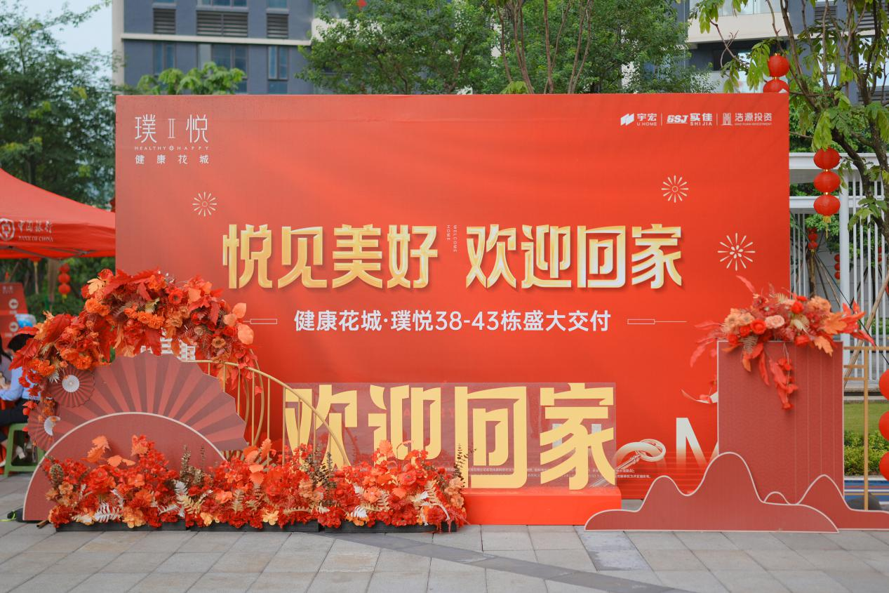 本次交付以39號樓首層架空層為主會場,為業主集中辦理收樓。收樓現場進行了精心布置,業主一走進東組團大門,“悅見美好 歡迎回家”的大型背景墻迎面而來,醒目溫情,讓業主第一時間就可以感受到回家的溫馨。遍布小區園林高高掛起的大紅燈籠以及主入口、各樓棟入口鋪設的大紅地毯,每家每戶陽臺整齊的中國結,更是讓業主感受到濃濃的喜慶氣氛。